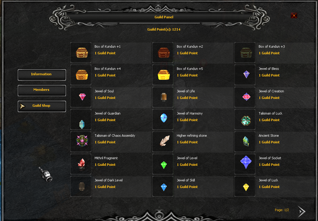 Guild Shop je systém odměn na který se hráči v guildě podílí svým progresem ve hře